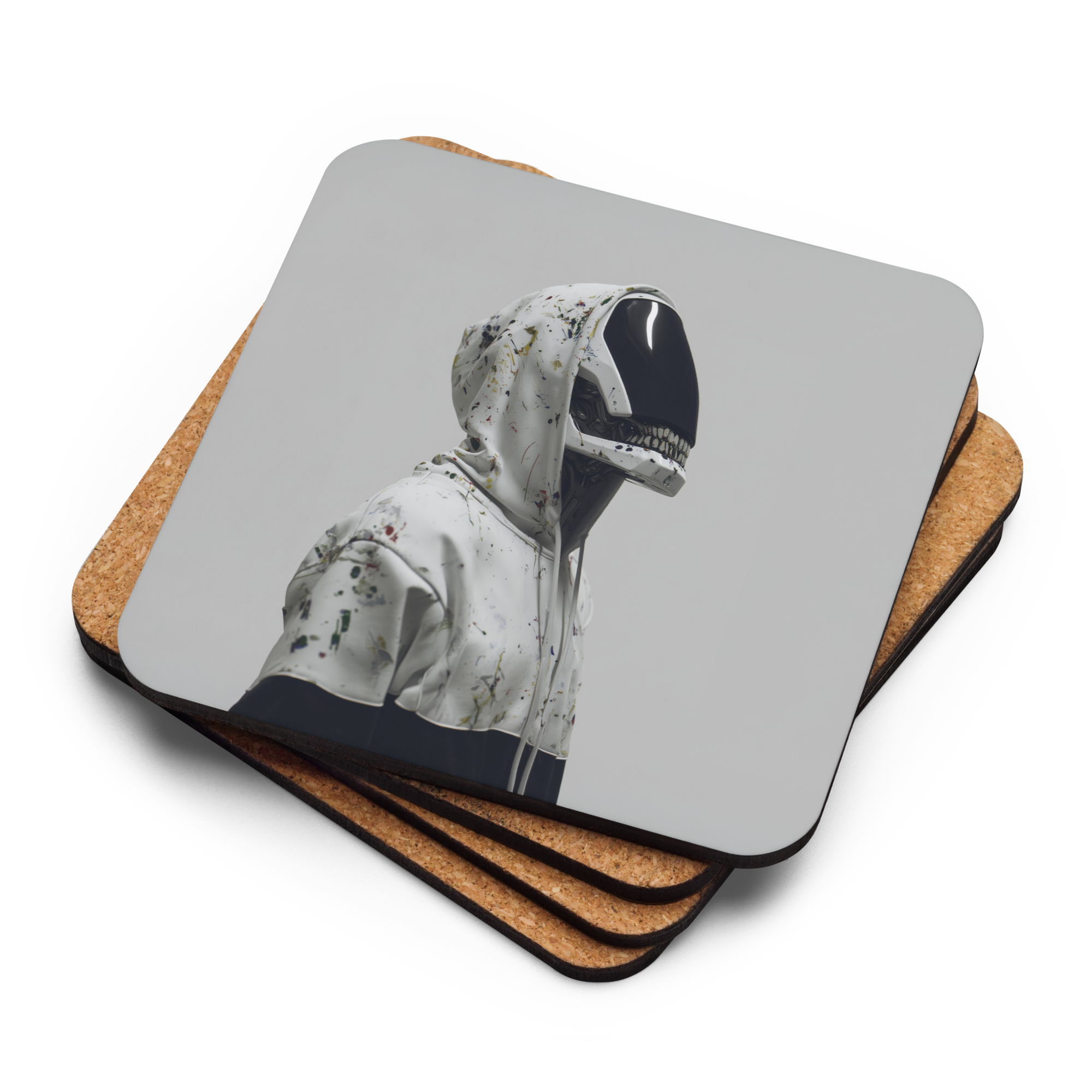 Original artwork by Akinsa printed on a durable gloss surface with natural cork backing.